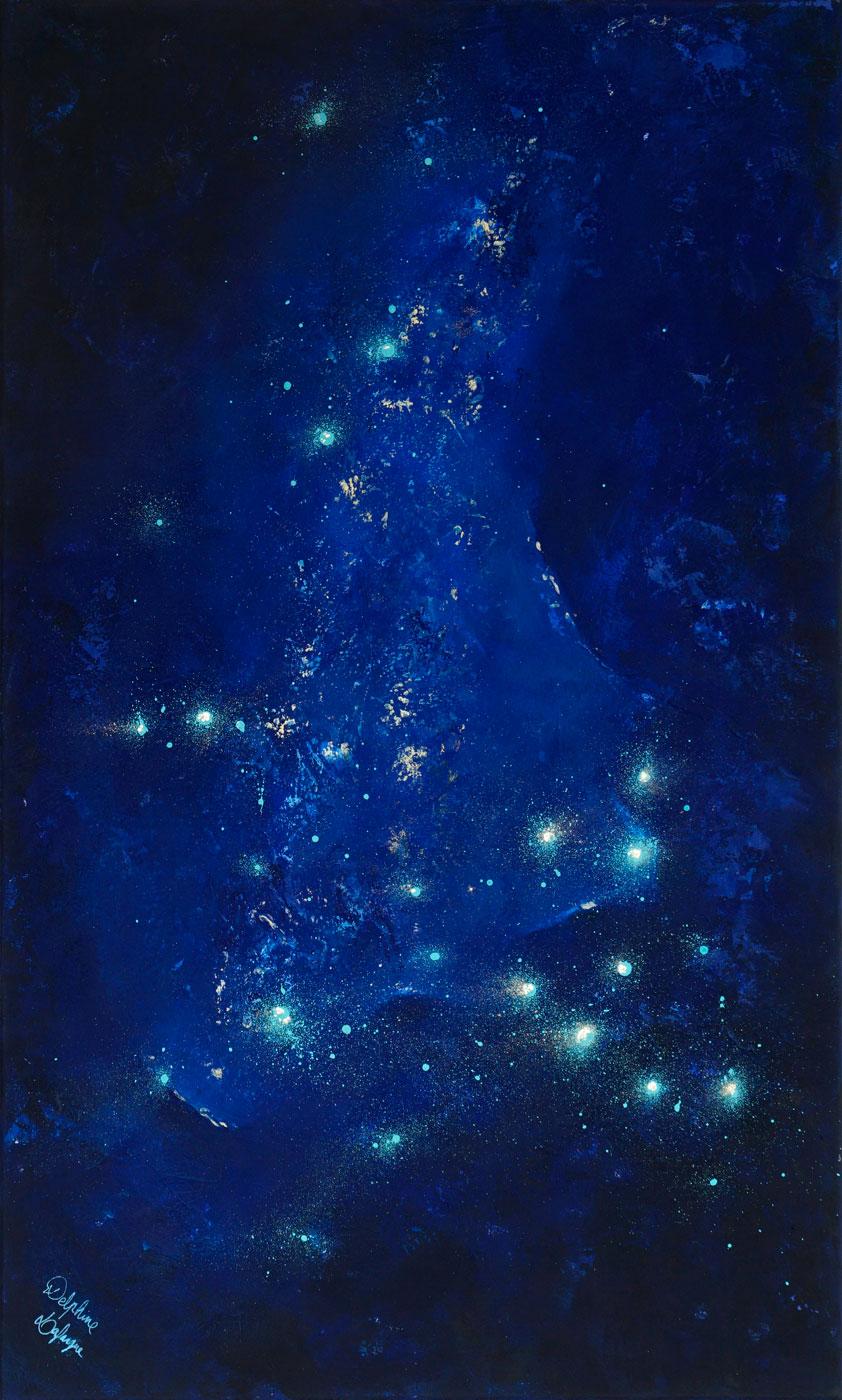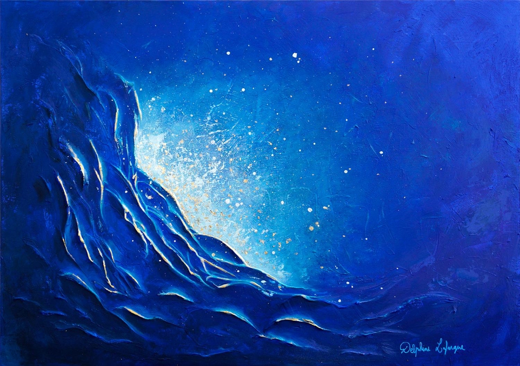 Du plus loin de notre galaxie jusqu’au fin fond des abysses, on retrouve dans mes peintures toute l’énergie et la force de la nature à travers les éléments (l'eau, le feu, la terre, l'air, l'énergie, le mouvement...). J'exprime cette force dans la confrontation des ombres, des lumières et des couleurs.
